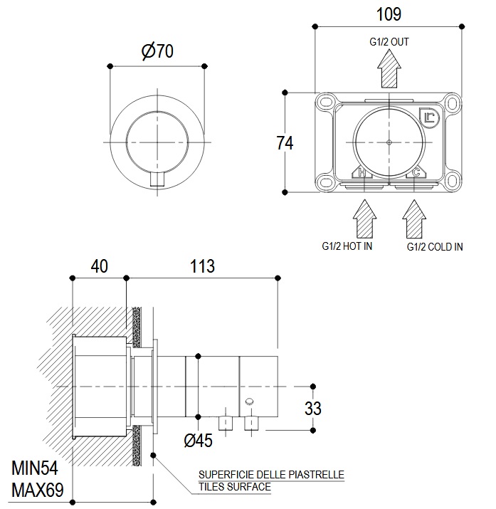 Średnica rozety: Ø70 mm