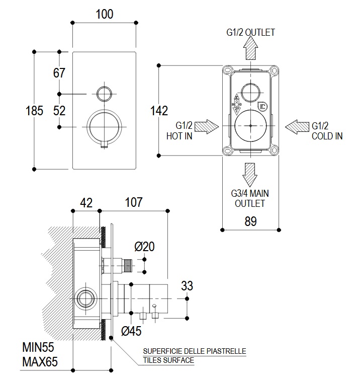 Ritmonio Bateria wannowo-natryskowa podtynkowa termostatyczna chrom PR28HE102CRL