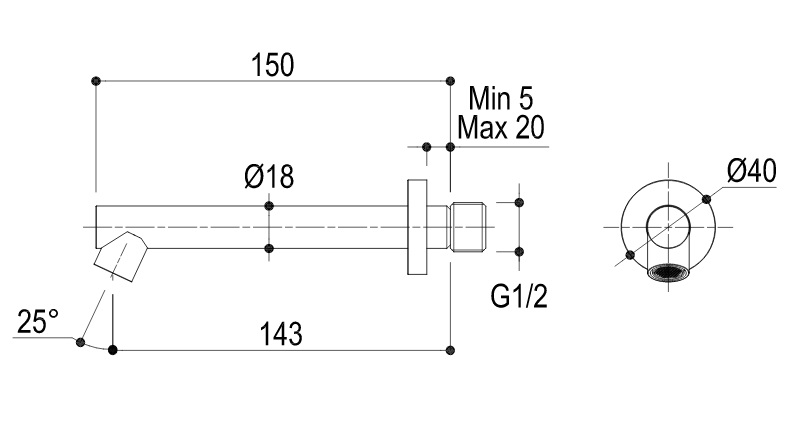 Ritmonio Diametro35 Wylewka umywalkowa ścienna chrom E0BA0157H1CRL