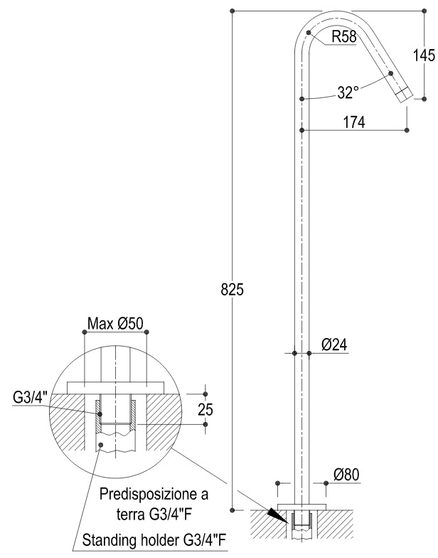 Ritmonio Diametro35 Wylewka wannowa wolnostojąca 83 cm chrom E0BA0104H2CRL