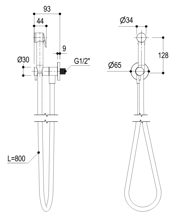 Bidetka z wężem 800 mm i przyłączem kątowym.