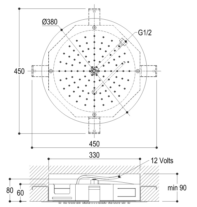 Ritmonio Deszczownica Sufitowa 38 cm lustrzana stal 75IP03LUC