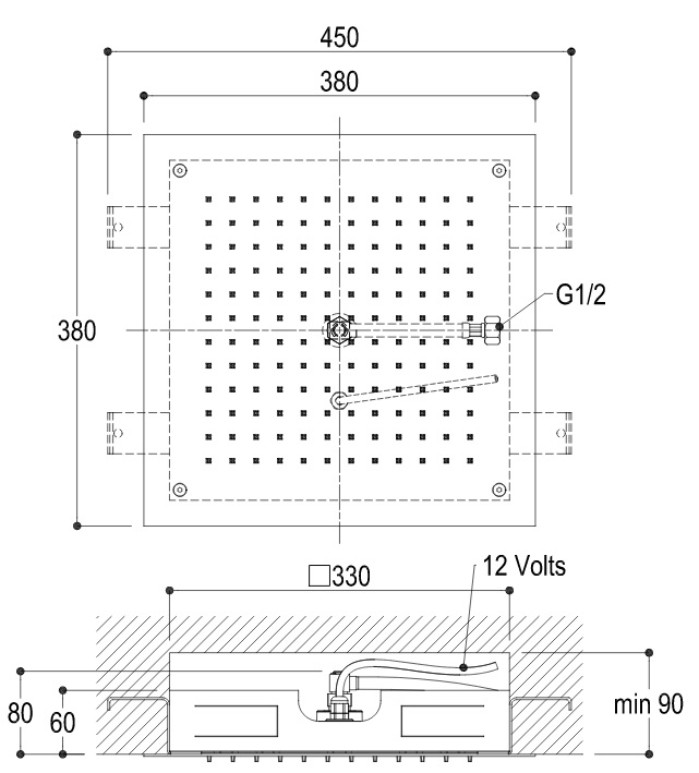 Ritmonio Deszczownica Sufitowa 38x38 cm lustrzana stal 75IP02LUC