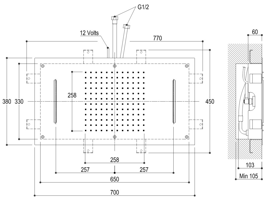 Ritmonio Deszczownica Sufitowa 70x38 cm lustrzana stal 75AP01LUC