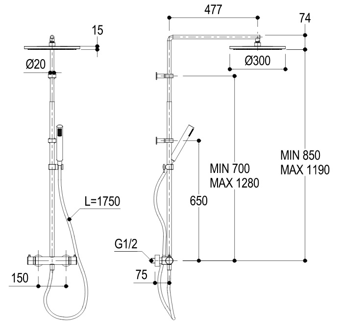 Ritmonio Zestaw Natryskowy Ścienny chrom 7ADN206CRL
