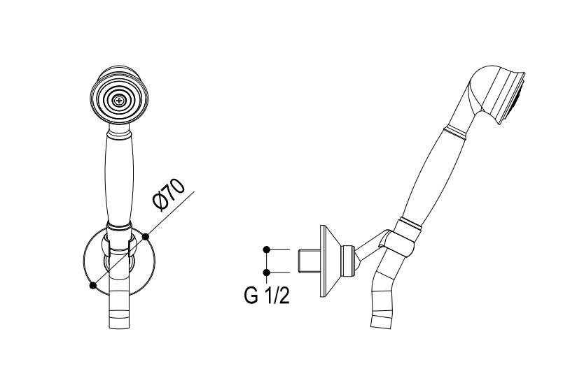 Zestaw składa się ze słuchawki, węża 1500 mm, uchwytu i kolanka wypływu.