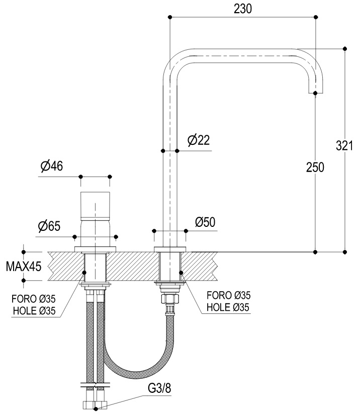 • Montaż: 2-otworowy