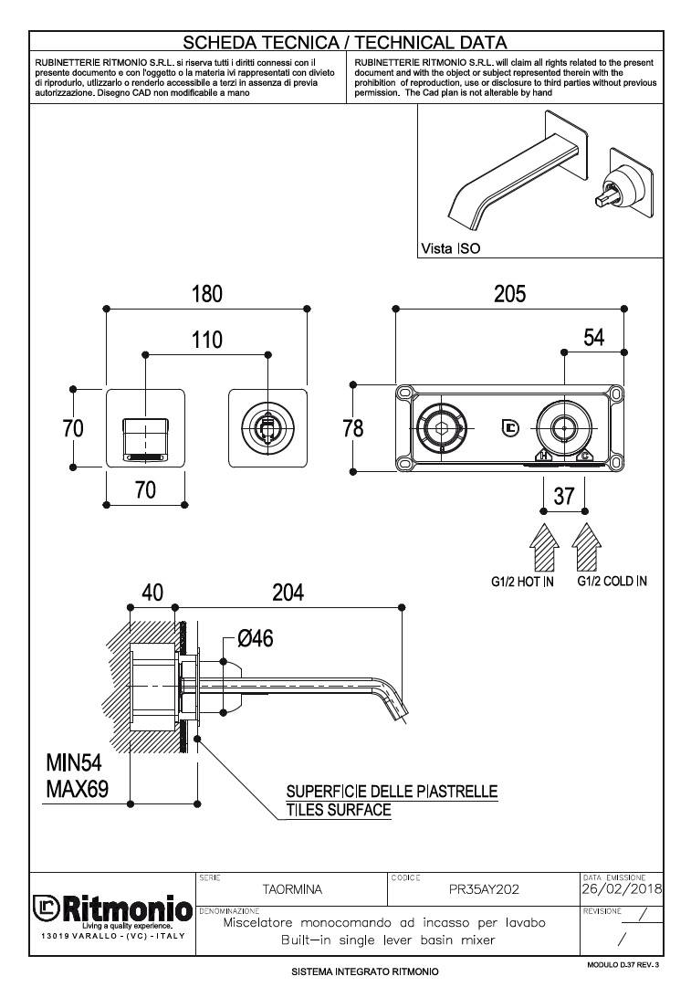 Wymiary: Wysokość: 70 mmSzerokość: 205 mmDługość wylewki: 204 mmPasujące produkty:- Uchwyt PR35MC001CRL- Uchwyt PR35MC101CRLZdjęcie poglądowe przedstawia baterię z uchwytem PR35MC101CRL