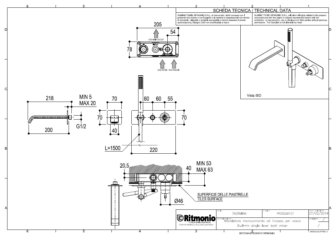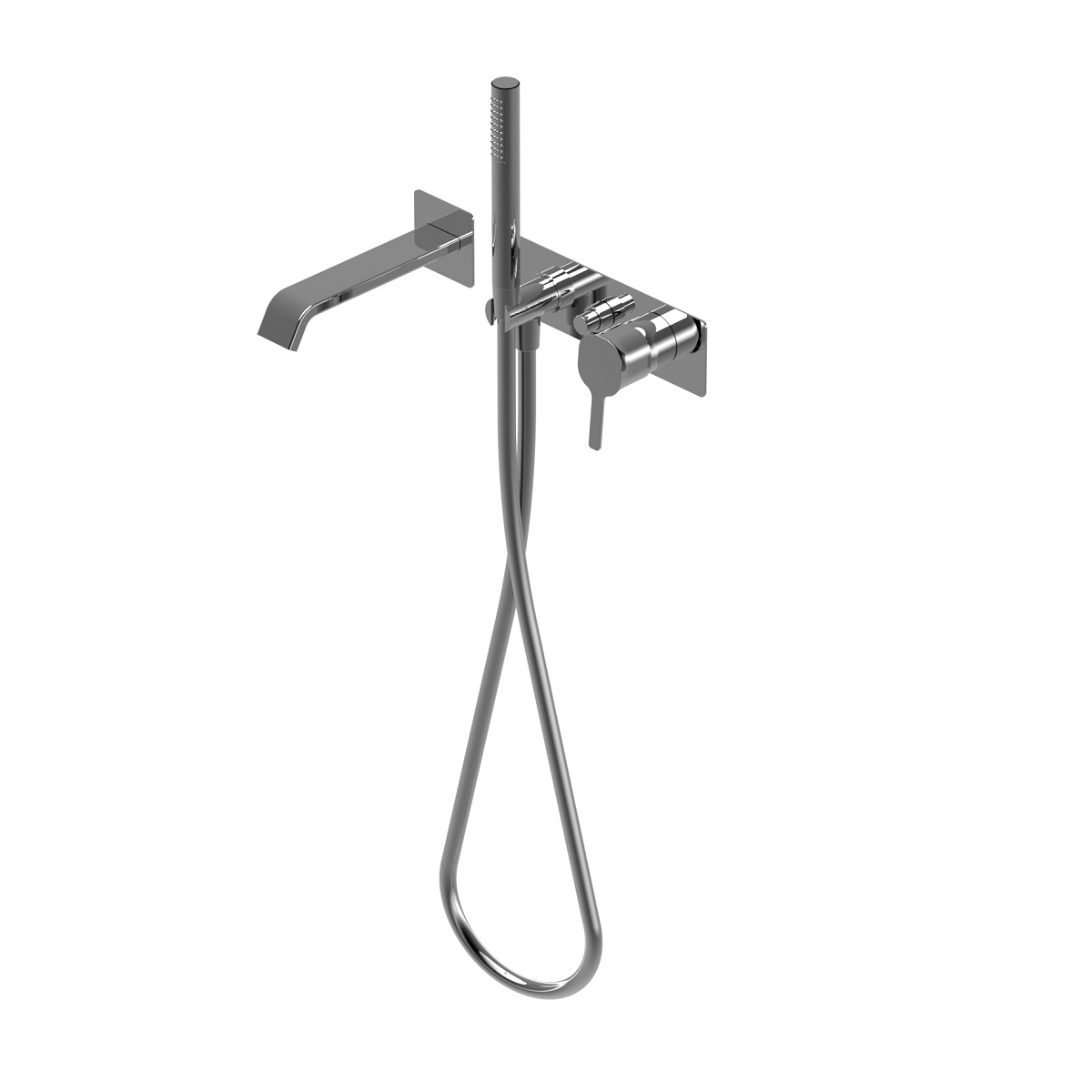 Ritmonio Taormina Bateria wannowa podtynkowa z wylewką i słuchawką chrom PR35EN101CRLSłuchawka ABS Ø23 mm, wylewka wannowa oraz wąż w komplecieElement podtynkowy w komplecieBateria 2-drożnaKolor: Chrom
