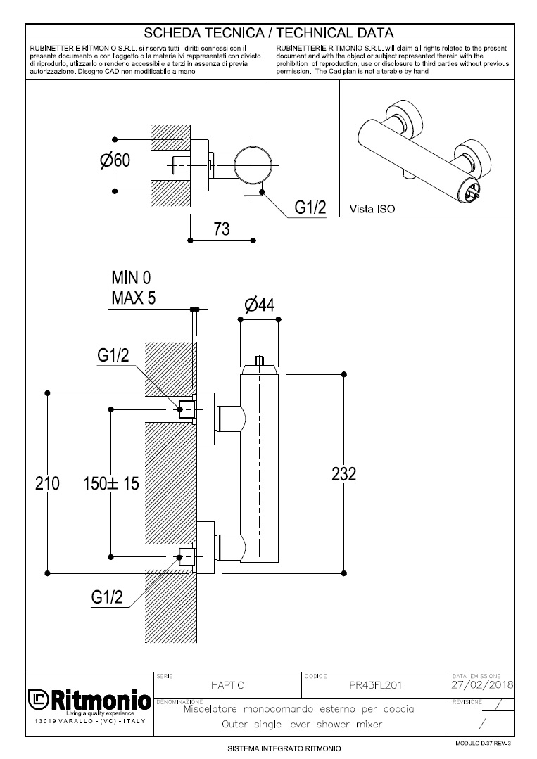 Ritmonio Taormina Bateria natryskowa ścienna chrom PR43FL201CRL