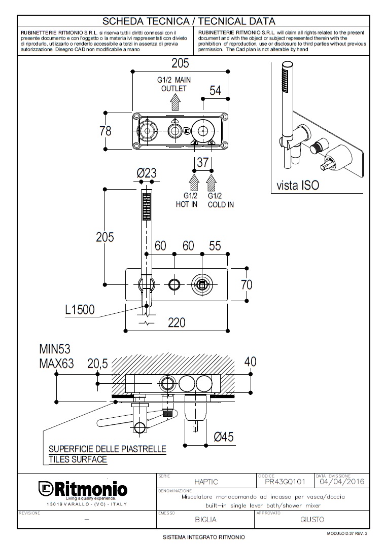 Ritmonio Bateria wannowo-natryskowa podtynkowa z słuchawką chrom PR43GR101CRLSłuchawka ABS Ø23 mm oraz wąż w komplecieElement podtynkowy w komplecieBateria 2-drożna z przełącznikiemKolor: Chrom
