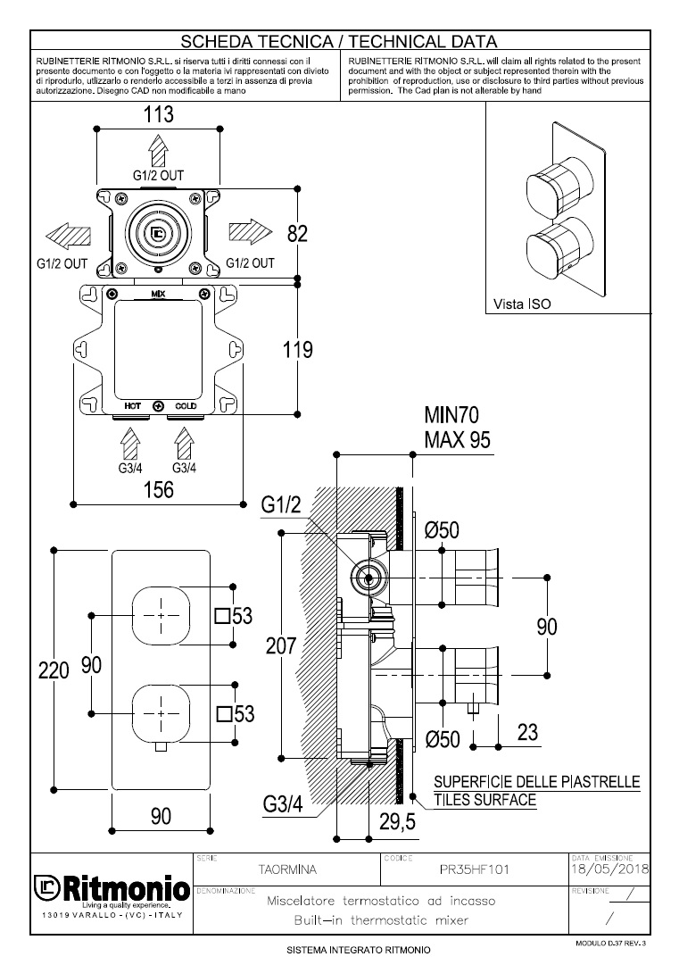 Ritmonio Taormina Bateria wannowo-natryskowa termostatyczna podtynkowa chrom PR35HG101CRLElement podtynkowy w komplecieBateria 3-drożna z przełącznikiemKolor: ChromZa dopłatą istnieje możliwość zakupu w innym kolorze (GALERIA)