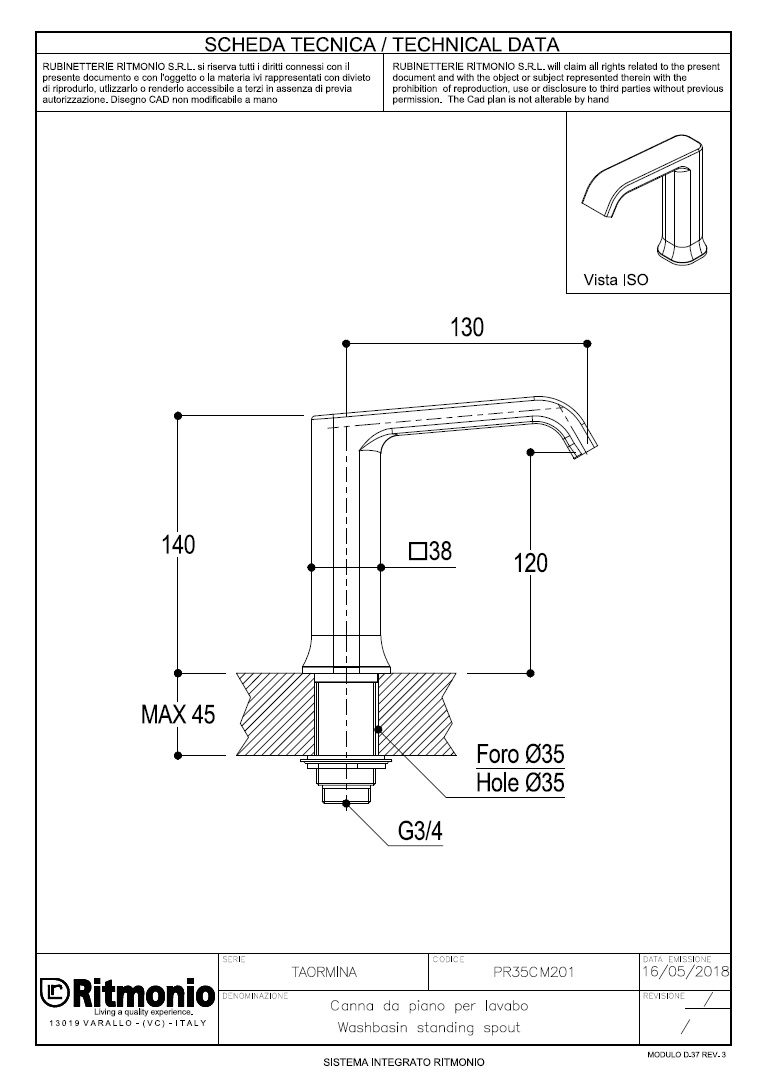 Ritmonio Taormina Wylewka umywalkowa chrom PR35CM201CRL