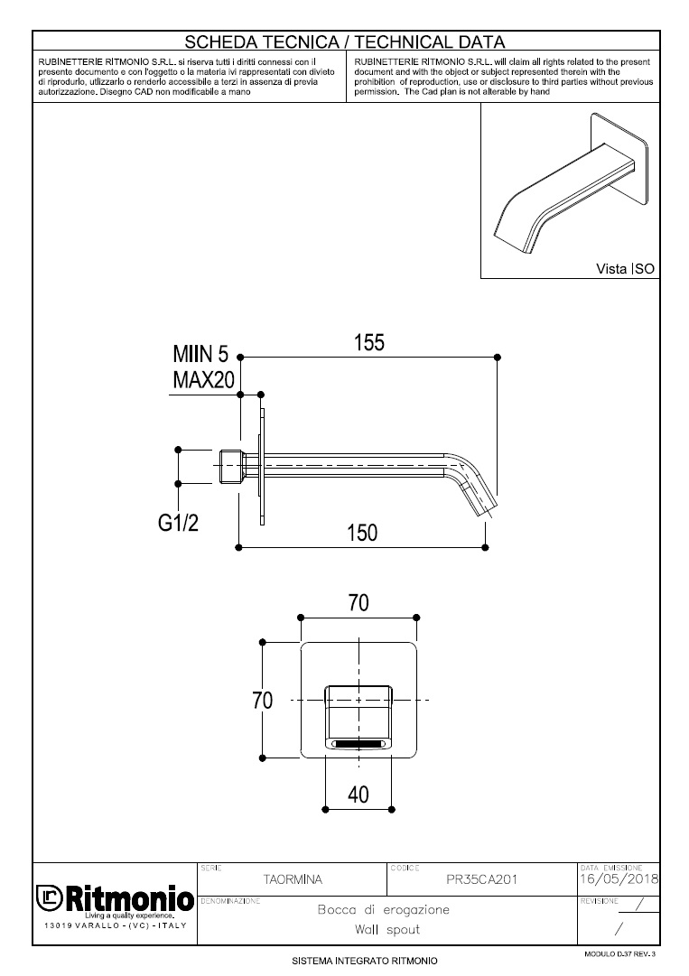 Ritmonio Taormina Wylewka umywalkowa ścienna chrom PR35CA201CRL