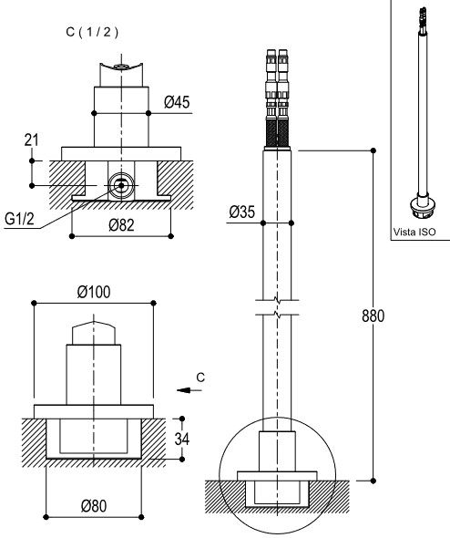 Ritmonio Przedłużacz do korpusu baterii stojącej stal nierdzewna E0BA0105EINOX
