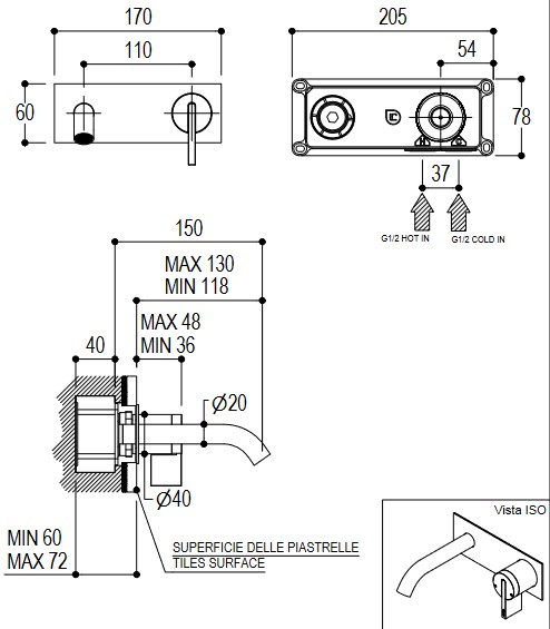 Ritmonio DOT316 Round Bateria umywalkowa podtynkowa stal nierdzewna PR50AL111INOX