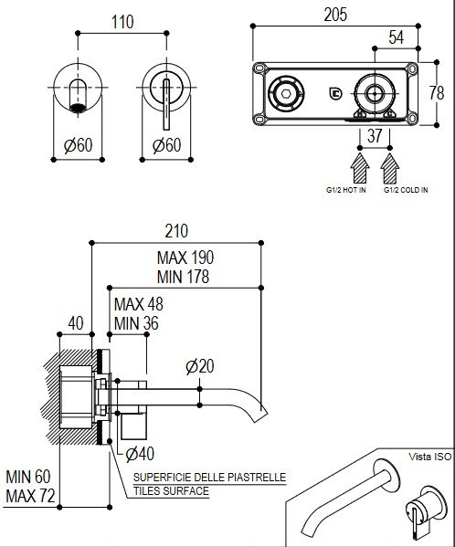 Długość wylewki: 210 mm