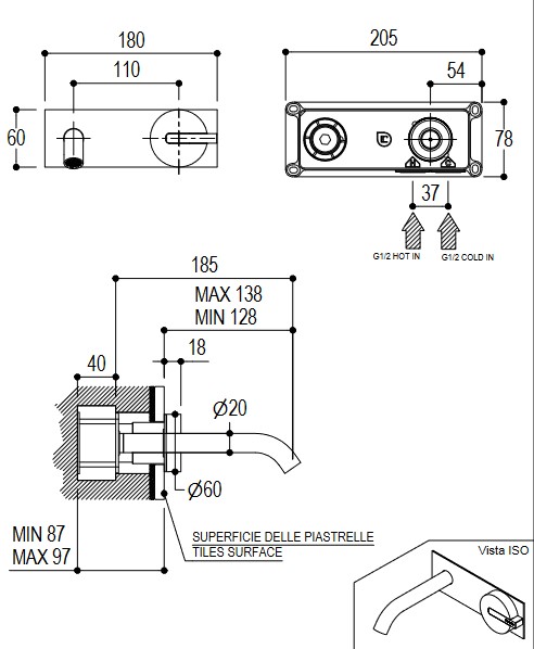 Długość wylewki: 185 mm