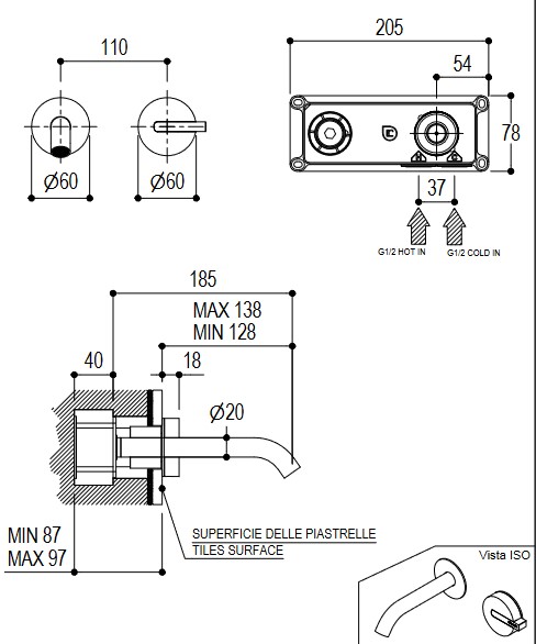 Ritmonio DOT316 Round Bateria umywalkowa podtynkowa stal nierdzewna PR50AL231INOX