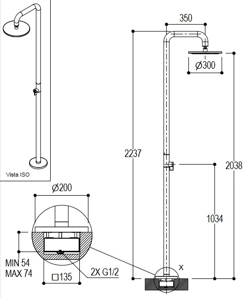 Ritmonio DOT316 Round Zestaw prysznicowy wolnostojący stal nierdzewna PR50DK2Q2INOX