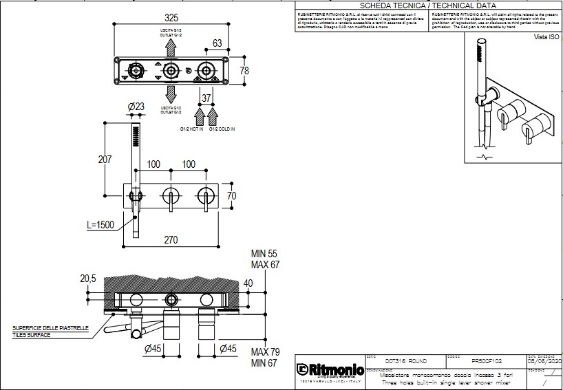 Ritmonio DOT316 Round Bateria wannowo-prysznicowa podtynkowa stal nierdzewna PR50GG102INOX