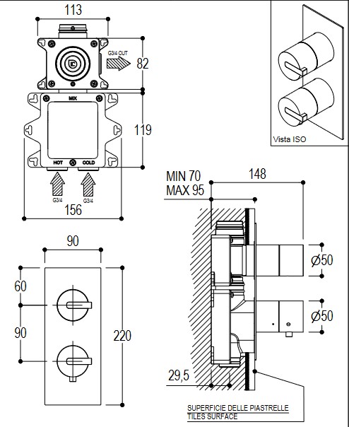 Ritmonio DOT316 Round Bateria wannowo-prysznicowa termostatyczna podtynkowa czarna stal nierdzewna PR50HC102IBX