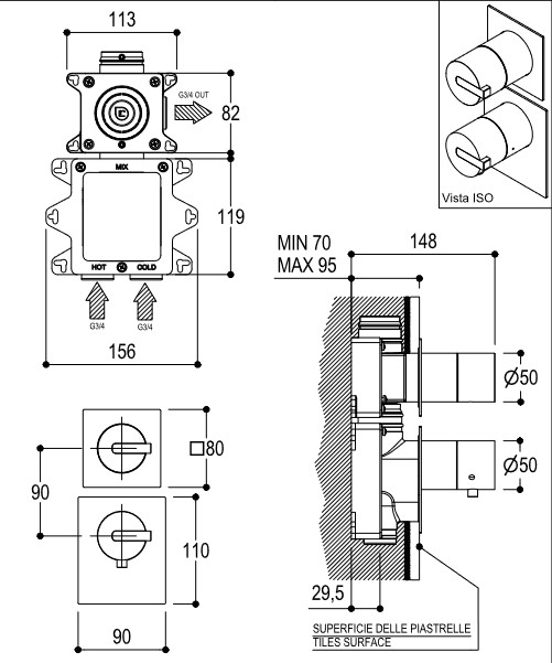 Ritmonio DOT316 Round Bateria wannowo-prysznicowa termostatyczna podtynkowa stal nierdzewna PR50HC201INOX