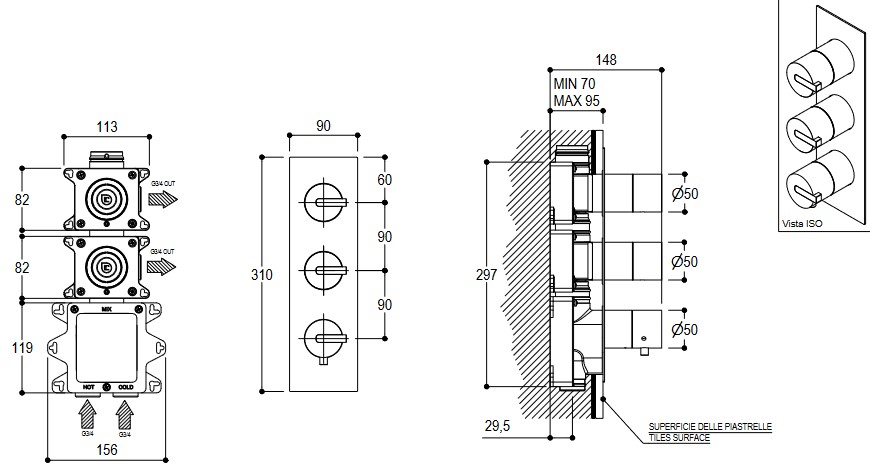 Ritmonio DOT316 Round Bateria wannowo-prysznicowa termostatyczna podtynkowa czarna stal nierdzewna PR50HE101IBX
