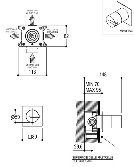 Ritmonio DOT316 Round Rozdzielacz 3-drożny podtynkowy stal nierdzewna PR50LB201INOX
