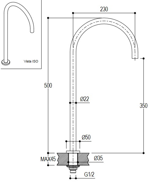 Długość wylewki: 230 mm