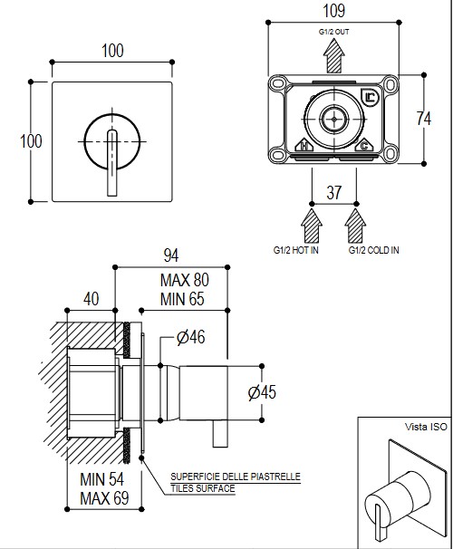 Ritmonio DOT316 Round Mieszacz do prysznica/umywalki podtynkowy stal nierdzewna PR50FC111INOX