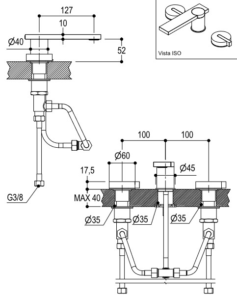 Ritmonio DOT316 Bateria umywalkowa 3-otworowa stal nierdzewna PR50AE201INOX