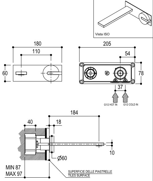 Długość wylewki: 184 mm