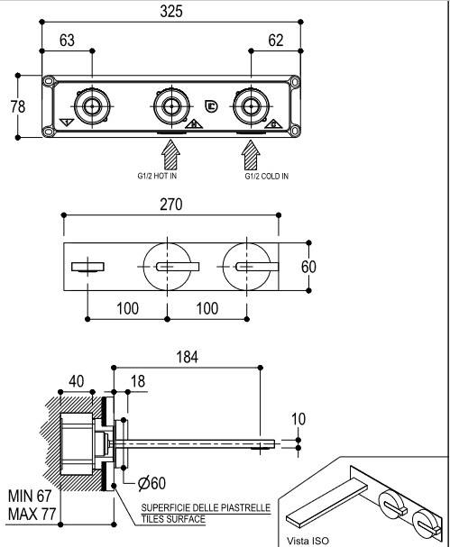 Ritmonio DOT316 Bateria umywalkowa podtynkowa stal nierdzewna PR50AK102INOX