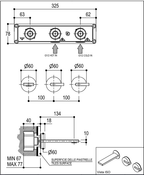 Ritmonio DOT316 Bateria umywalkowa podtynkowa stal nierdzewna PR50AK201INOX