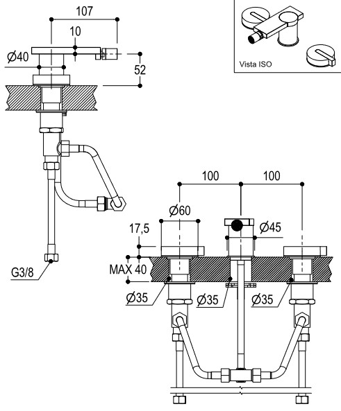 Rozstaw przyłączy: 100 mm