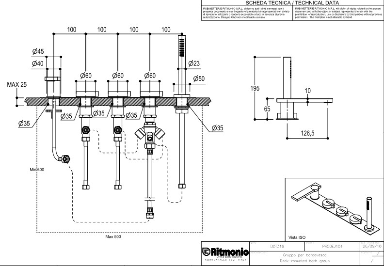 Ritmonio DOT316 Bateria wannowo-prysznicowa 5-otworowa stal nierdzewna PR50EJ101INOX