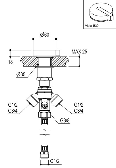 Ritmonio DOT316 Rozdzielacz wannowy stal nierdzewna PR50LC202INOX