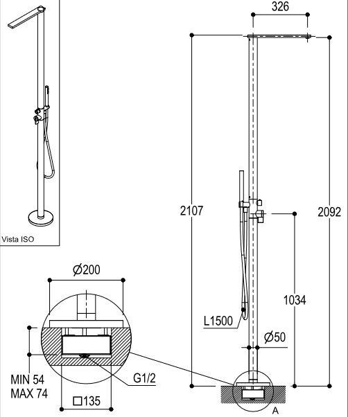 Ritmonio DOT316 Zestaw prysznicowy stojąca stal nierdzewna PR50DK201INOX