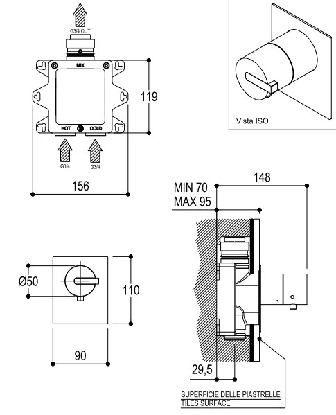 Ritmonio DOT316 Bateria wannowo-prysznicowa termostatyczna podtynkowa stal nierdzewna PR50HC101INOX