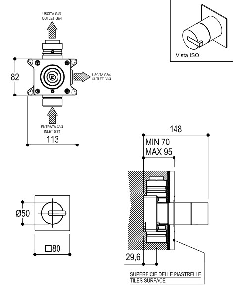 1 wylot boczny sterowany śrubą ceramiczną z pozycją zatrzymania i regulacją przepływu