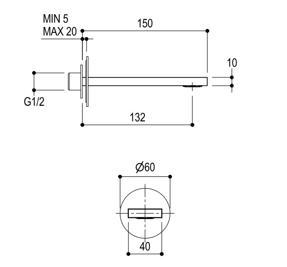 Ritmonio DOT316 Wylewka umywalkowa ścienna stal nierdzewna PR50CA201INOX