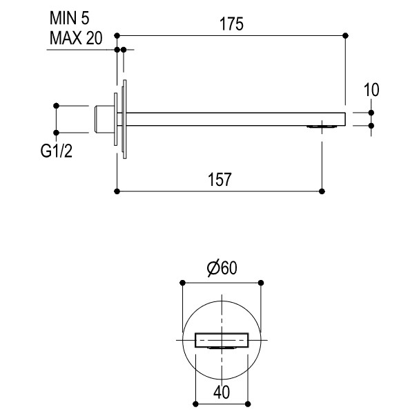 Ritmonio DOT316 Wylewka umywalkowa ścienna stal nierdzewna PR50CA202INOX