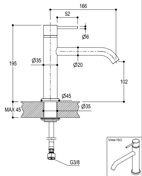 Ritmonio Diametro35 Bateria umywalkowa 1-otworowa stal nierdzewna E0BA0124CSINOX