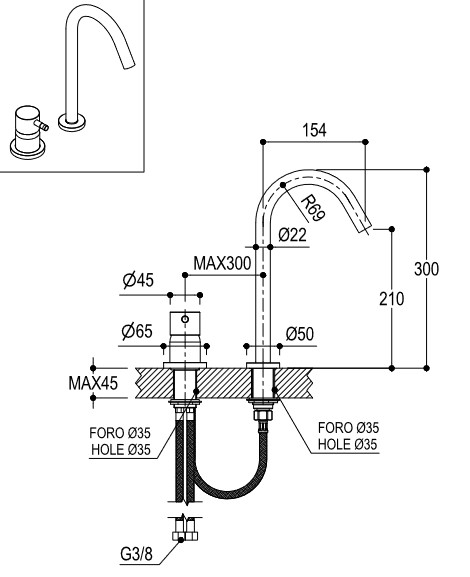 Ritmonio Diametro35 Bateria umywalkowa 2-otworowa stal nierdzewna E0BA0125H1INOX