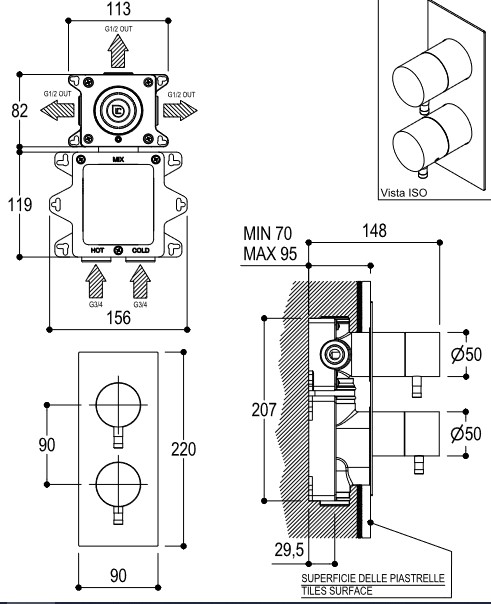 Ritmonio Bateria wannowo-prysznicowa termostatyczna podtynkowa stal nierdzewna E0BA0179ESPINOX