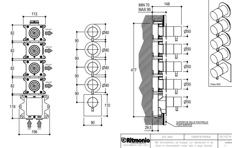 Ritmonio Bateria wannowo-prysznicowa termostatyczna podtynkowa stal nierdzewna E0BA0187ESPINOX