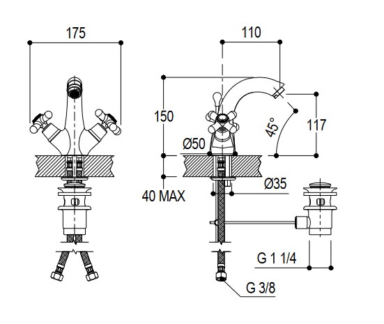 Długość wylewki: 110 mm