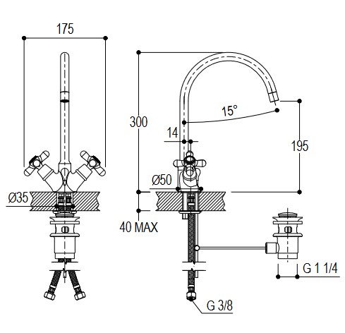 Ritmonio Ritro Bateria umywalkowa 1-otworowa chrom PR42039CRL