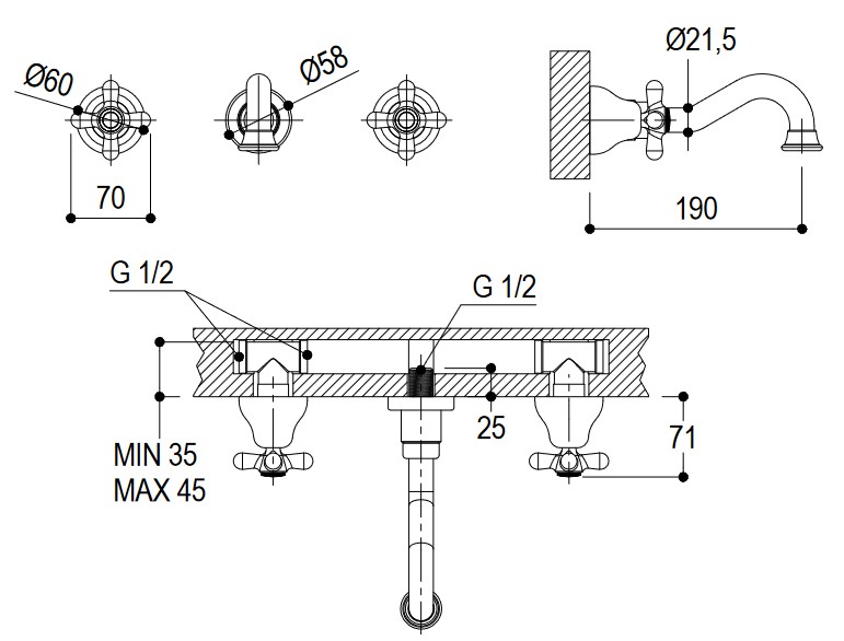 Ritmonio Ritro Bateria umywalkowa ścienna chrom PR42070CRL